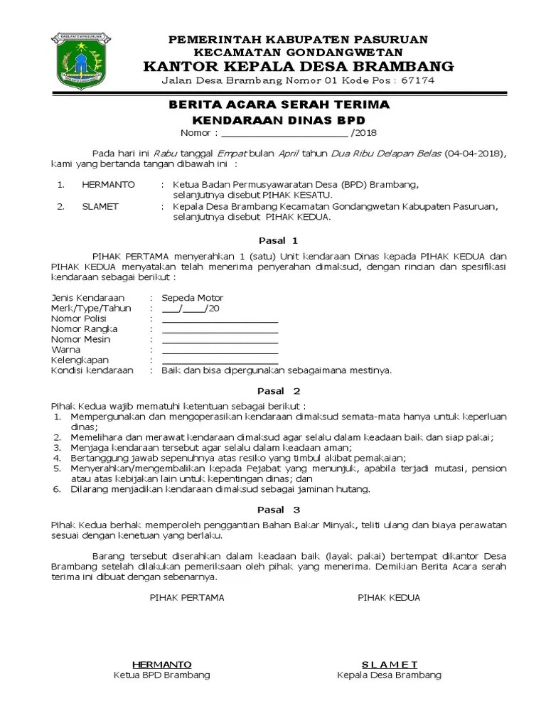 Contoh Surat Berita Acara Serah Terima Mobil - Doc Berita Acara Serah Terima Kendaraan Bermotor Ananda Febriani Academia Edu / Contoh berita acara serah terima tanah.